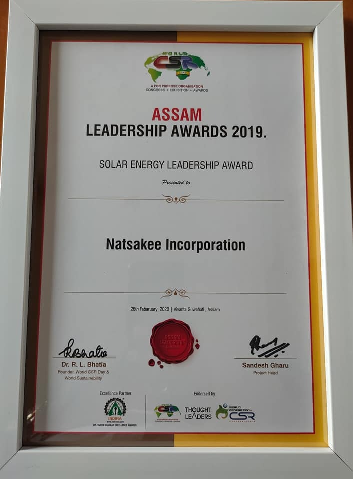 Natsakee Incorporation once again gets recognised as the Premium Solar Company in Northeast Region. It was honoured with various awards at recently concluded “India Rooftop Solar Congress-2022”. These awards not only represent our commitment to Quality Products and workmanship but also act as catalyst to our zeal for excellence.